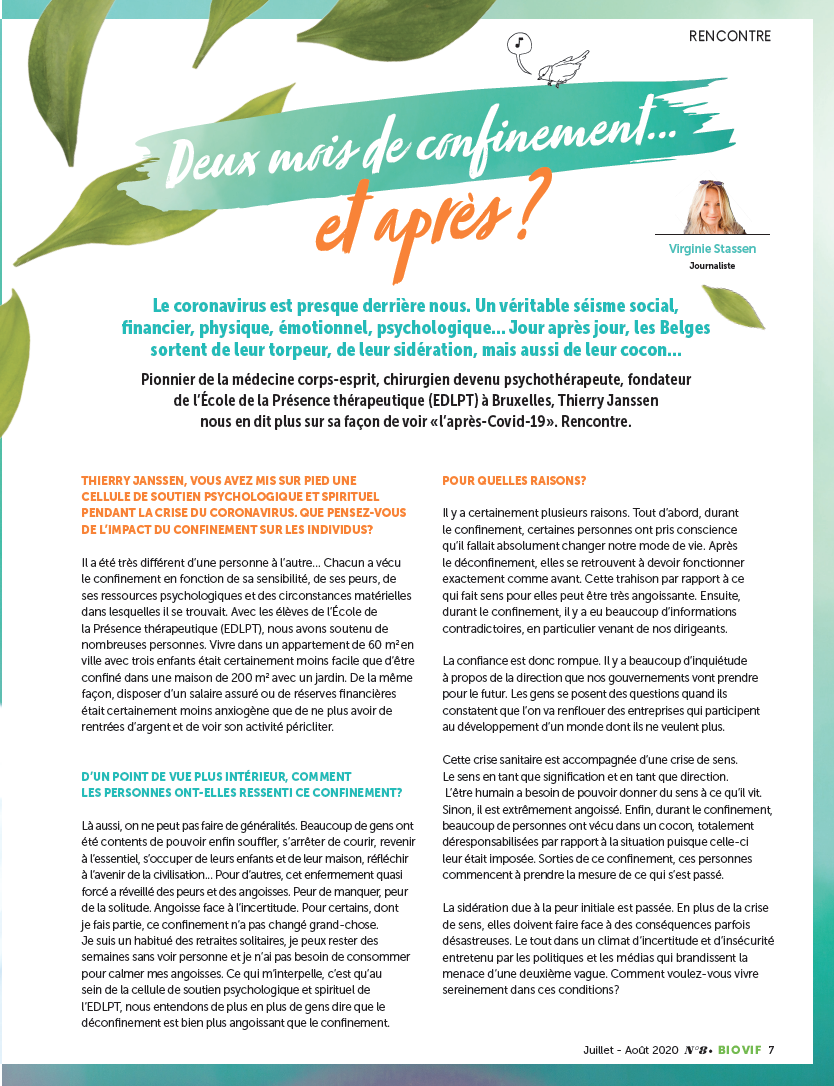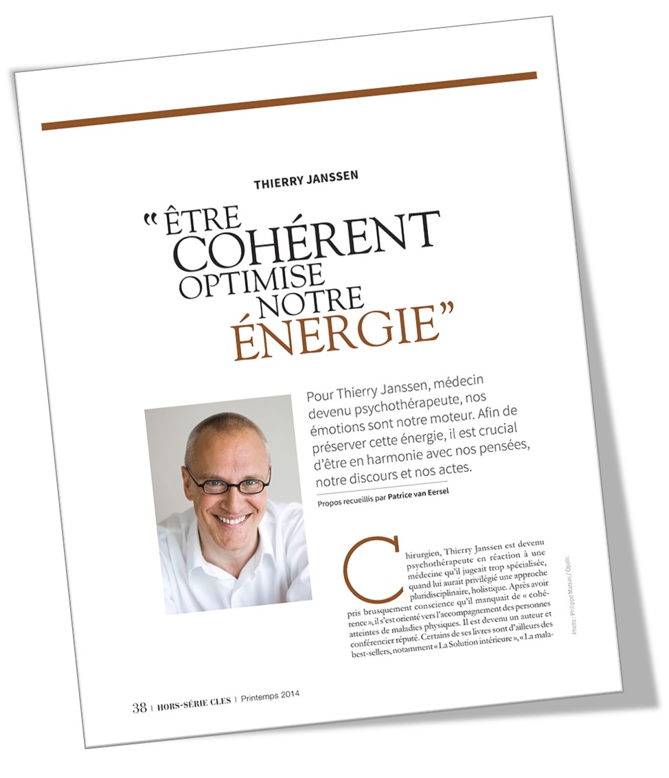 Pour Thierry Janssen, médecin devenu psychothérapeute, nos émotions sont notre moteur. Afin de préserver cette énergie, il est crucial d’être en harmonie avec nos pensées, notre discours et nos actes.